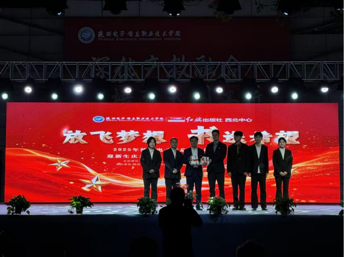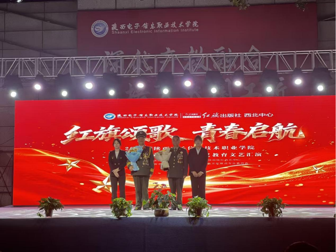 在喜迎建国76周年之际,为迎接2025级新生,培育爱国主义精神,9月26日,由红旗出版社西北中心、陕西电子信息职业技术学院联合主办,陕西省退役军人就业创业促进会红色文化推进专业委员会协办的“迎新生·庆双节”暨爱国主义教育文艺汇演隆重举行。活动以文艺表演与红色文化相结合的形式,为全体新生上了一堂生动而深刻的“开学第一课”。
