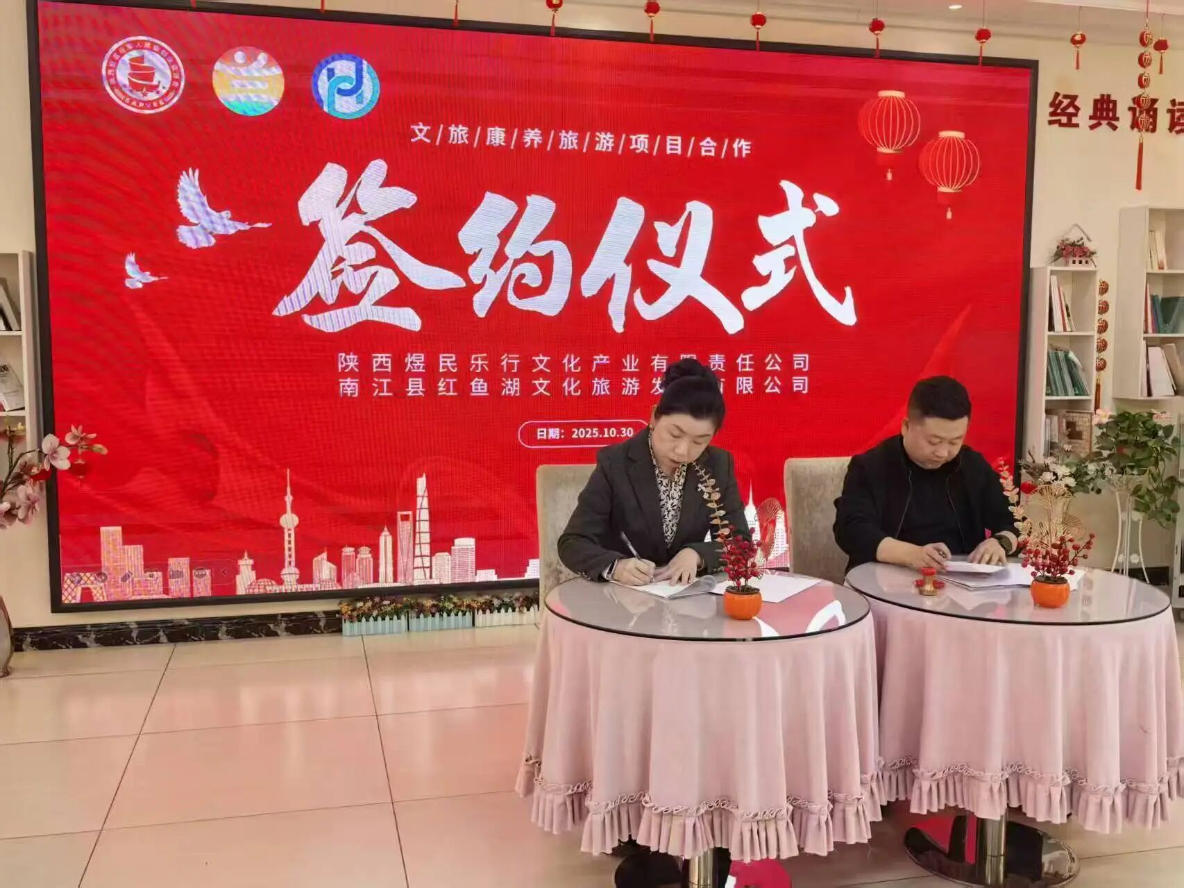 10月30日上午,我会会员单位、陕西秋兰康养产业集团旗下的陕西煜民乐行文化产业有限责任公司与四川南江农文旅发展集团有限公司在秋兰集团总部举行《文旅康养旅游项目合作协议》签约仪式。我会康养旅居专业委员会主任、秋兰康养董事长曹鹏、南江县红鱼湖文化旅游发展有限公司总经理吴昊出席签约仪式;四川南江农文旅发展集团有限公司副总经理殷婉舒、南江县红鱼湖文化旅游发展有限公司工会主席杨怀奉、秋兰康养旅居部负责人唐邦芬等参加。